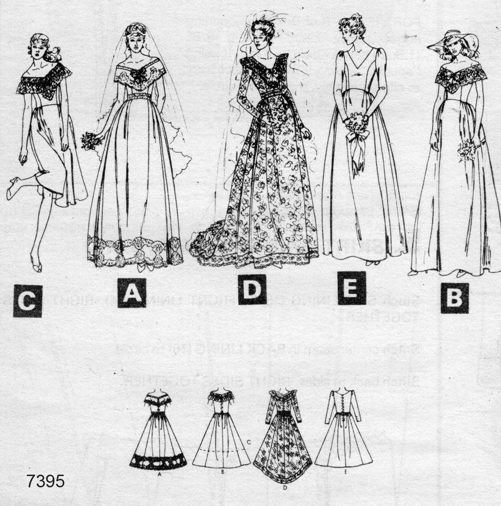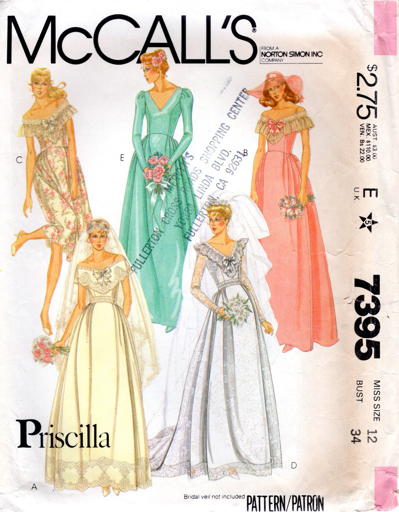 McCall’s 7395 Bridal Gown, Cocktail Dress, Evening Dress and Bridesmaid Dress Designed by Priscilla Bust 34 Complete except for an elastic guide Copyright 1981