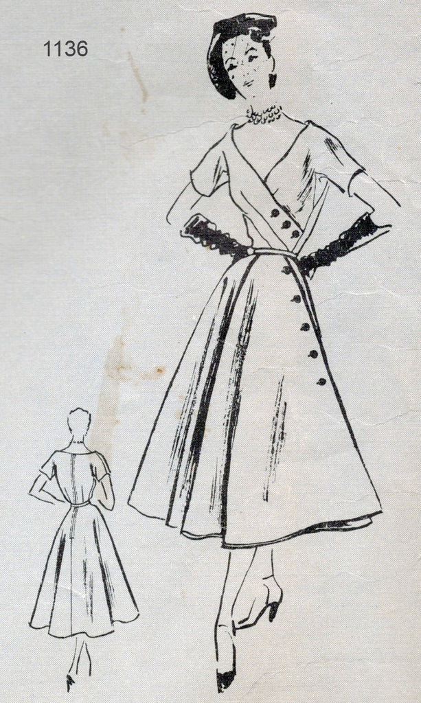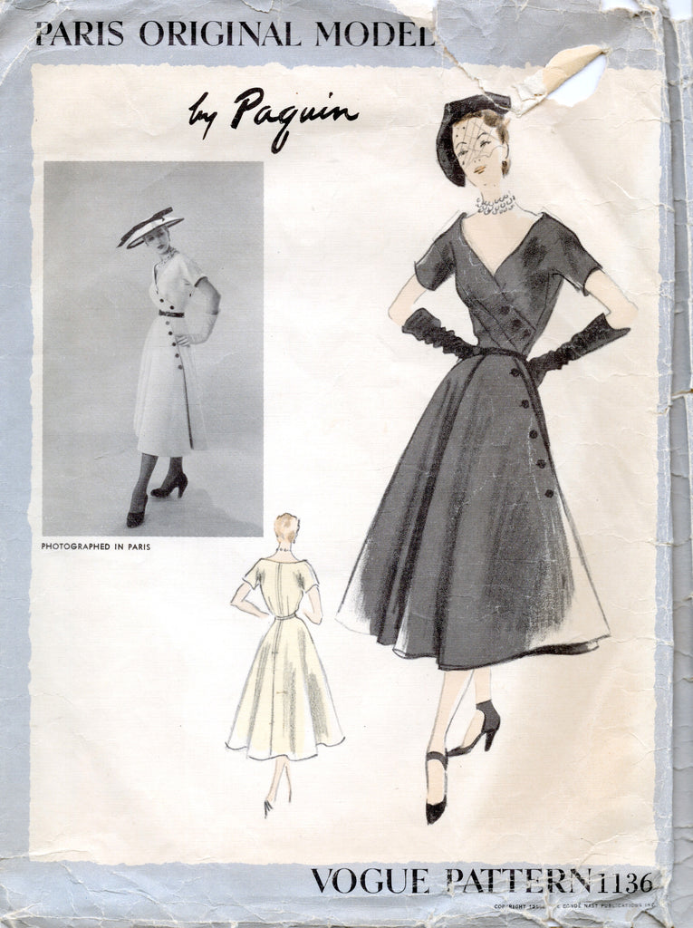 Vogue Paris Original 1136 Dress Designed by Paquin Bust 32 Still in factory folds Copyright 1951