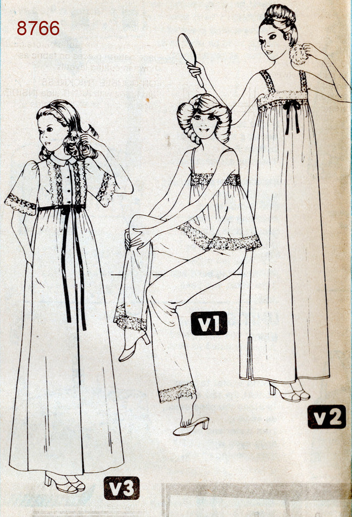 Simplicity 8766 Nightgown, Pajamas and Robe Bust 34 Complete Copyright 1977