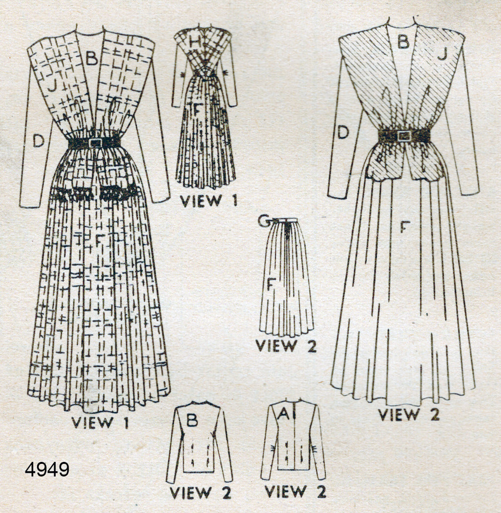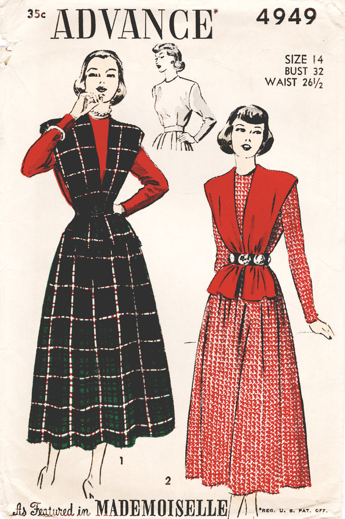 Advance 4949 Skirt, Stole and Blouse Featured in Mademoiselle Magazine Bust 32 Complete Circa 1948