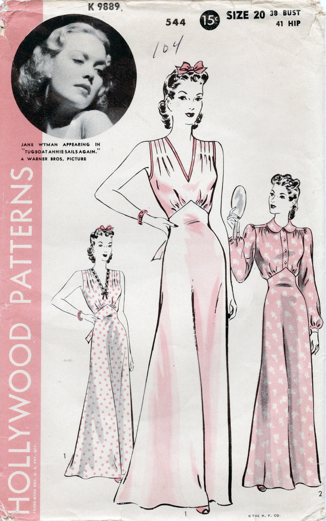 Hollywood 544 Bias Nightgowns Featuring Jane Wyman of “Tugboat Annie Sails Again” Bust 38 Still in factory folds Circa 1940