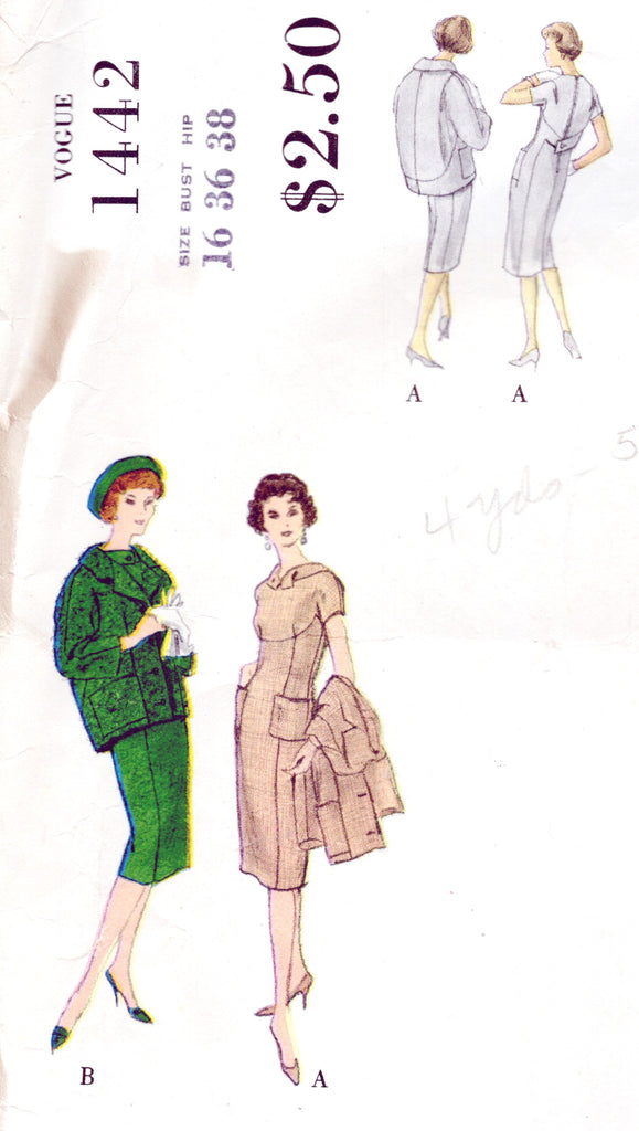 Vogue Paris Original 1442 Dress and Jacket Designed by Jacques Heim Bust 36 Complete Copyright 1959