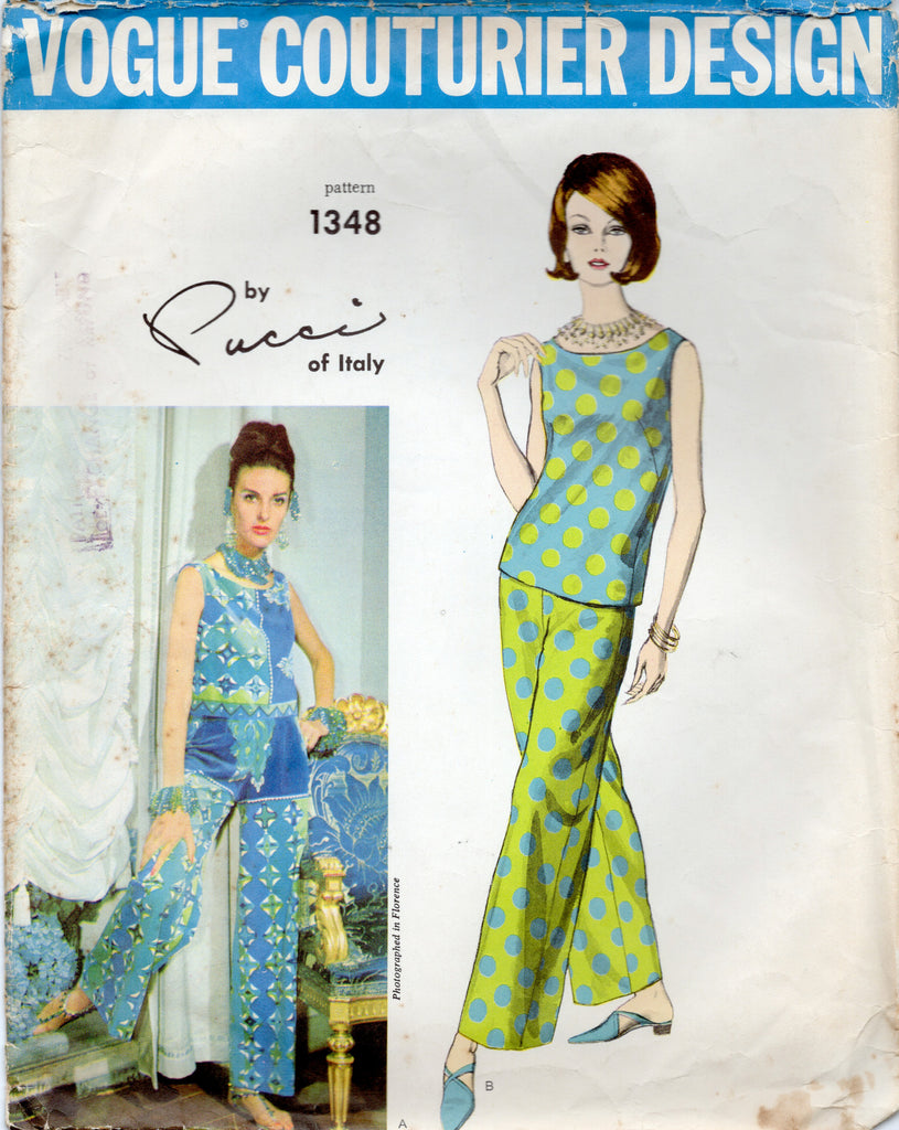 Vogue Couturier Design 1348 Slacks and Top Designed by Pucci Still in factory folds Circa 1964