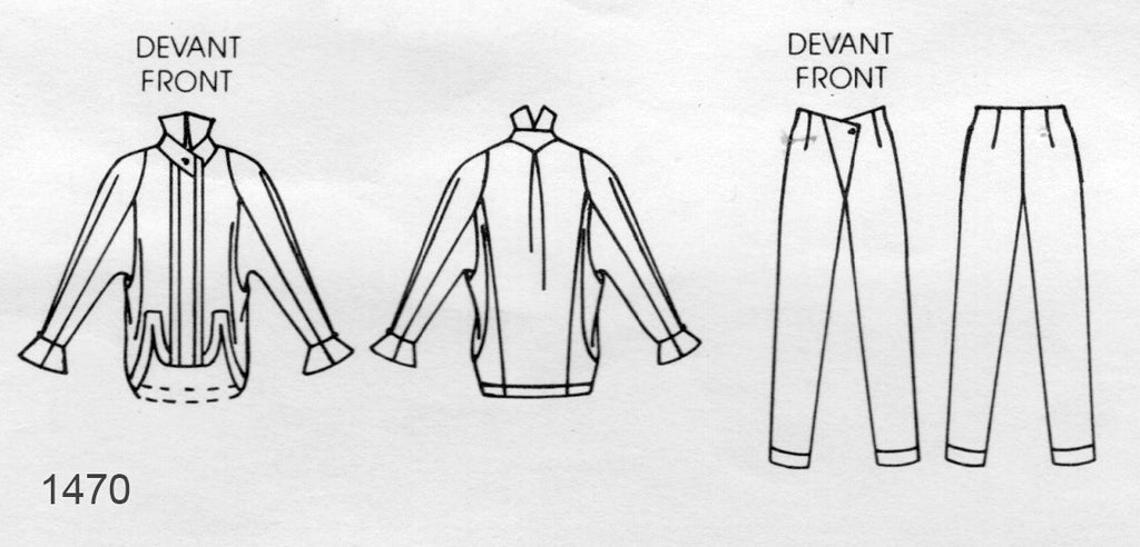 Vogue Individualist 1470 Blouse and Slacks Designed by Claude Montana Bust 34 Pattern complete; one page of instructions missing Circa mid-1980s